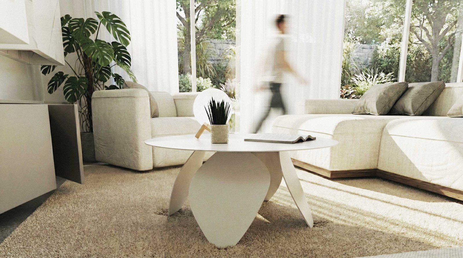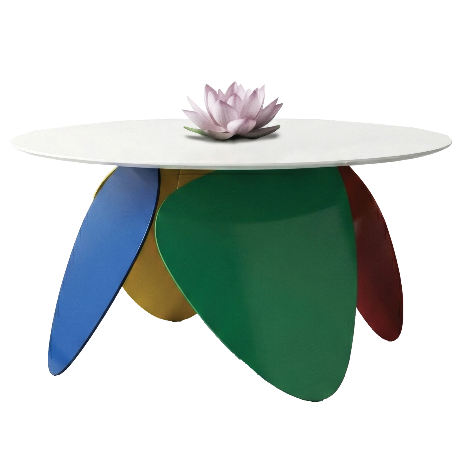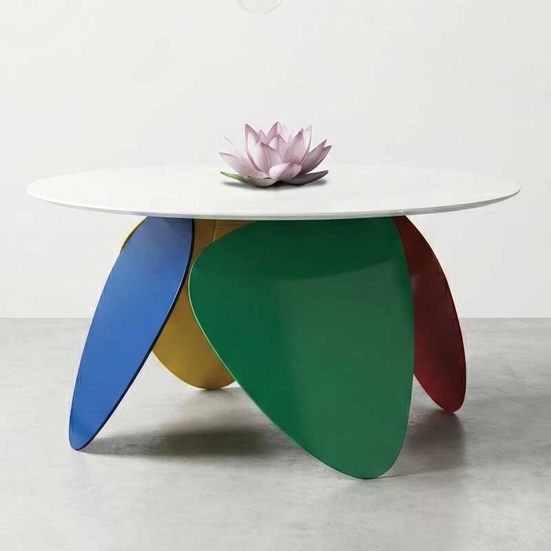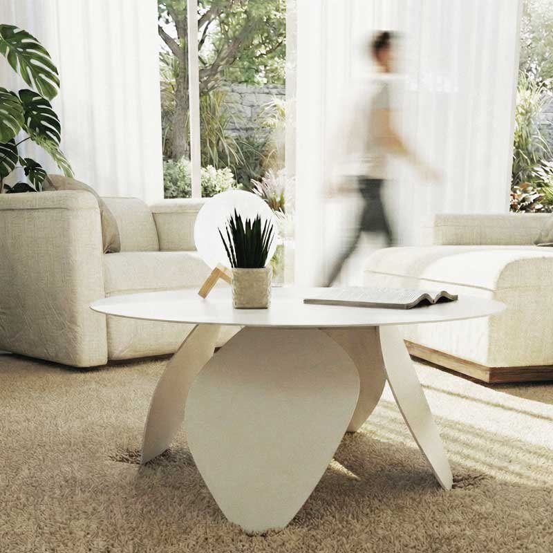 La struttura richiama la delicatezza dei petali, dando vita a un tavolo dalla presenza unica e riconoscibile.