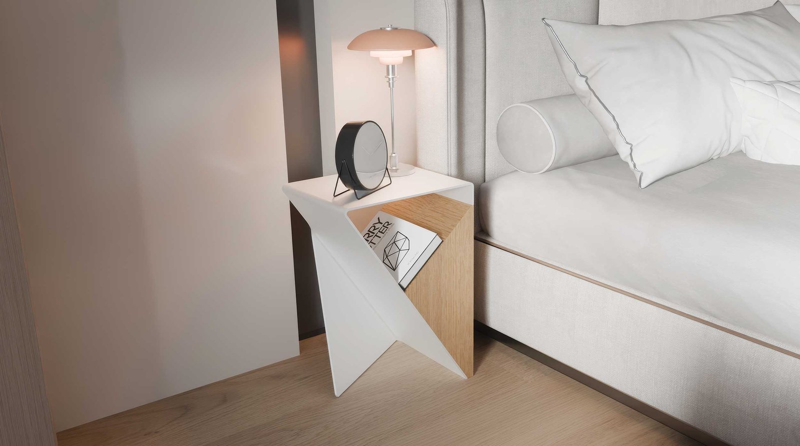 “Il complemento che arreda. Svevo è molto più di un comodino: è una piccola scultura quotidiana, funzionale e senza fronzoli, nata per arredare con stile e personalità.”