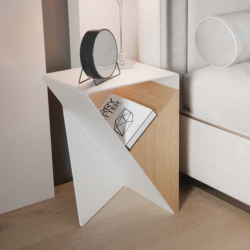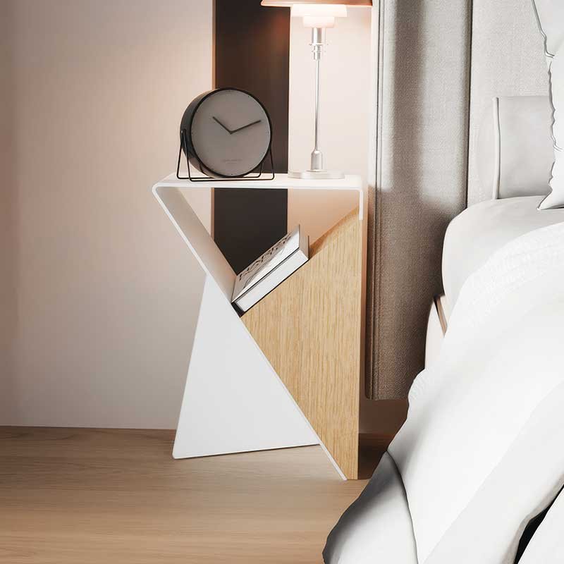 Svevo integra mensola, vano portaoggetti e superficie d’appoggio in una struttura compatta e versatile, perfetta sia come comodino nella zona notte sia come complemento di design nel living.